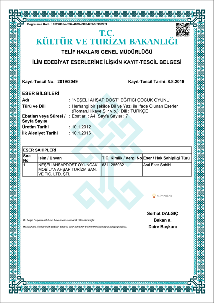 Neşeli Ahşap Dost, üretimden tasarıma kadar tüm süreçlerinde özgünlüğe ve güvenilirliğe önem veren tescilli ve patentli bir markadır. Markamız, yasal olarak koruma altına alınmış yapısıyla hem iş ortaklarına hem de müşterilerine güven verir. Geliştirdiğimiz ürünler, özgün tasarımlarıyla sektörde fark yaratır.